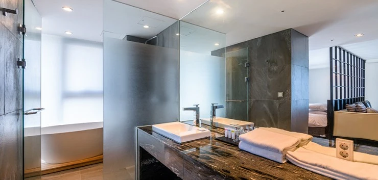 욕실은 샤워실과 화장실, 세면대가 분리된 구조이다. 여러 명이 투숙할 경우 편리한데, 스위트 룸에는 욕조도 설치되어 있다. 어메니티는 샴푸, 린스, 바디워시, 비누가 어메니티로 제공된다.