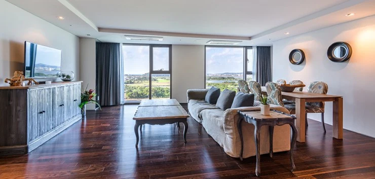 아름다운 오션뷰와 성산일출봉도 감상할 수 있어 더 인기가 높은데, 2개의 더블베드가 있으며 침대 추가도 가능하며, 최대 6인까지 투숙할 수 있다.