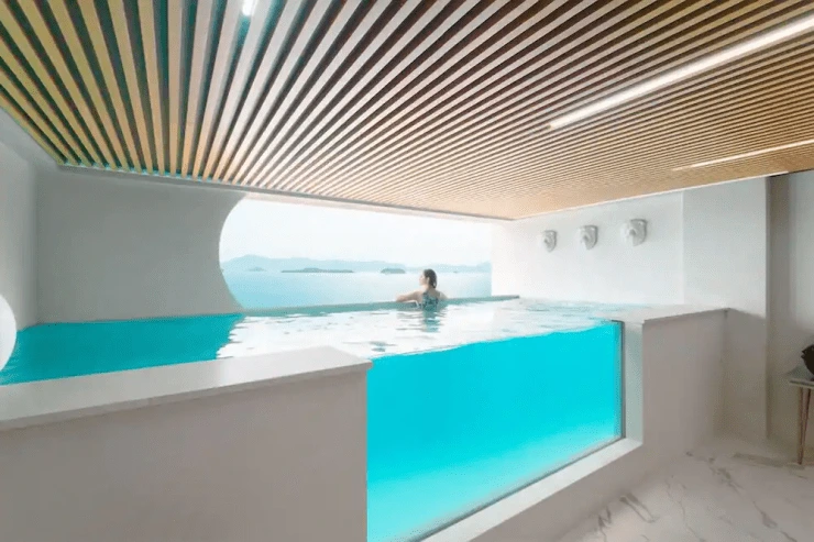 전 객실에 프라이빗 수영장이 마련돼 있다. 오후 3시부터 저녁 8시 30분까지 자유롭게 이용 가능하며. 온수 추가 비용은 10만 원으로, 익일 오전까지 온수 유지를 원하면 5만 원이 별도 부과된다.