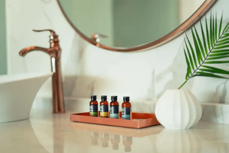욕실 어메니티로는 샴푸와 컨디셔너, 바디워시, 바디로션, 비누가 제공된다. 칫솔과 치약, 쉐이빙 키트, 머리끈, 화장솜, 면봉, 샤워캡, 빗, 바디 스펀지, 폼 클렌징 등 일회용품도 꼼꼼히 구비해 놨다.