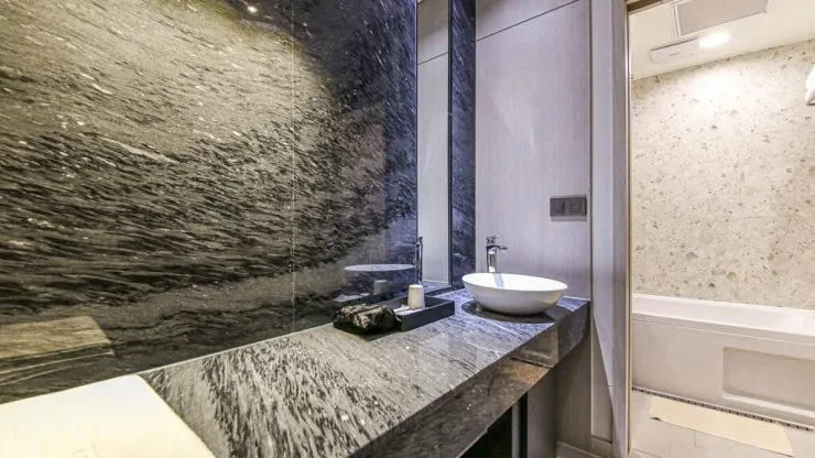 냉장고엔 음료와 생수가 있고 미니바엔 믹스커피, 커피, 녹차, 와인 오프너 등이 구비되어 있다. 욕실은 생각보다 넓은데, 월풀 욕조가 있어서 입욕제로 피로를 풀 수 있다. 타월, 드라이기, 고데기, 비누, 샴푸, 린스, 바디클렌저, 칫솔 치약, 면도기, 면도기 등 어메니티도 있다.