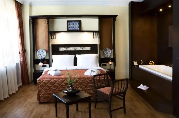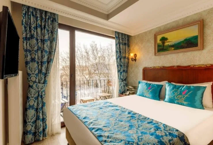 이스탄불 블루모스크 바로 앞에 위치한 호텔 술탄아흐메트 팰리스는 로맨틱한 인테리어로 만족도 높은 4성급 호텔이다. 객실은 총 45개로 모두 전신 욕조가 설치되어 있어 반신욕 하며 여독을 풀기 좋다. 특히 객실에 따라 블루모스크 또는 해변 전망 중 선택하여 투숙이 가능해 로맨틱한 분위기 내기에 제격일 거다.