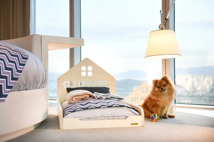 비스타 워커힐은 펫 전용 룸을 보유하고 있다. 15kg 이하의 강아지 혹은 고양이 1마리까지 투숙할 수 있다. 세련된 감각의 펫 전용 침대와 베개, 식탁 및 식기 세트, 전용 어메니티와 타월까지 모두 제공된다. 웰컴 키트로 장난감과 펜던트, 배변 봉투까지 없는 게 없을 정도다. 다만 사료는 제공되지 않으니 꼭 챙겨가야한다. 투숙객을 위한 객실 내 미니바도 무료로 제공돼 모두 행복한 시간을 보낼 수 있다.