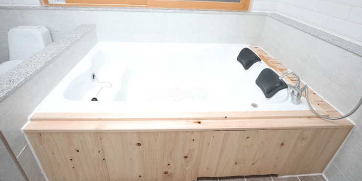 RI 온천 호텔은 사진에서 보시는 것처럼 원형 욕조와 히노끼(편백나무)탕 두가지 버전으로 방이 준비되어 있다. 예약 시에 히노끼탕인지 원형 욕조탕인지 미리 꼭 체크해보시고 예약 하도록 하자!