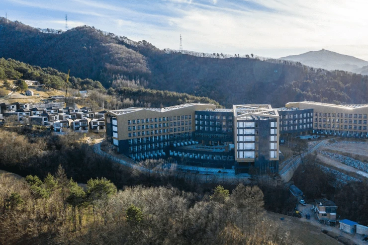 호텔은 고루포기산의 능경봉을 뒤로하고 대관령을 마주하는 산자락에 위치했어요. 외관조차 강원도 산마루를 모티브로 설계됐어요. 전면 유리창을 설치한 객실에서는 대관령의 아름다운 풍광을 조망할 수 있어요.