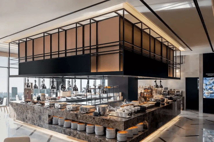 조식은 노보텔 앰배서더 서울 용산 2층 ‘푸드 익스체인지’에서 주중 오전 6시 30분부터 10시까지 뷔페로 운영된다. 주말에는 30분 더 운영되며 호텔 상황에 따라 장소 및 제공 방식이 변경될 수도 있다.