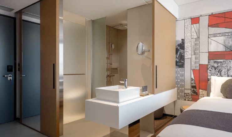 슈페리어 룸 욕실은 건식 세면대와 샤워 부스, 화장실이 분리된 구조로 미닫이 칸막이로 침실과 공간도 나눌 수 있다. 어메니티로는 샴푸와 컨디셔너, 바디워시가 다회용 용기로 제공된다. 이외 바디로션과 비누, 코튼 세트, 샤워캡, 빗, 목욕 가운을 구비했다. 단, 칫솔과 치약은 제공되지 않으며, 호텔 편의점에서 구매 가능하다.