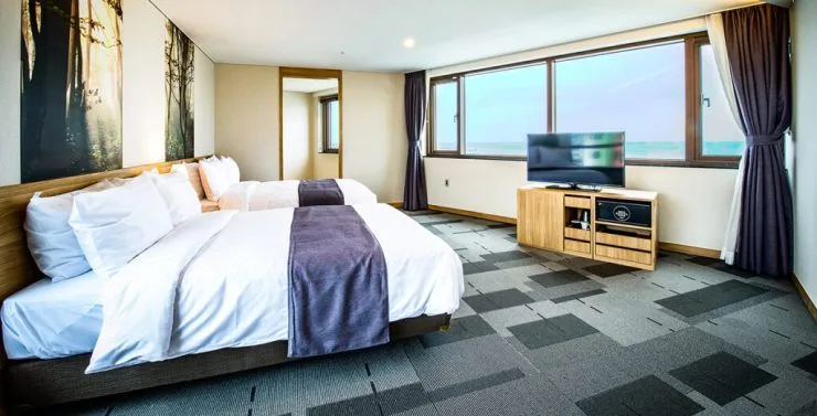 제주 유탑유블레스호텔은 스탠다드, 디럭스, 스위트 등의 객실 타입이 준비돼 있다. 전망은 시티뷰와 오션뷰 중 선택 가능하다. 가족 여행객이라면 온돌이나 패밀리룸을 선택해 보자. 4인 가족이 여유롭고 편안한 시간을 보낼 수 있다.