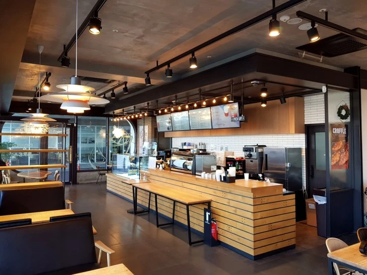 장산다방은 제주 휘슬락호텔 1층에 자리했다. 오전 8시부터 밤 10시까지 운영된다. 마주한 탑동공원 산책하다 가볍게 들르기 좋다. 처음이라면, 우도 땅콩라떼와 인절미빵, 마늘빵을 추천한다.