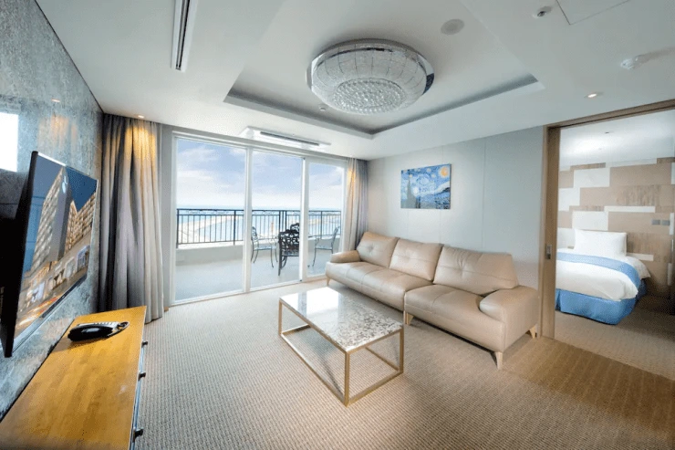 가족 여행자에게 사랑 받는 가성비 객실이에요. 침실과 욕실, 테라스로 구성됐으며, 한실 침구 2채를 구비했어요. 테라스에는 2인용 티 테이블과 의자를 비치해 놨어요. TV와 냉장고, 전기포트, 개별 냉난방 시스템도 완비했습니다.