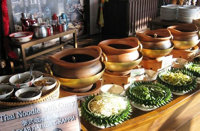 바이욕 수상시장 뷔페는 가장 최근에 75층에 오픈한 곳으로 수상시장 컨셉의 타이푸드 뷔페로 태국을 대표하는 각종 음식들, 팟타이, 쏨땀, 쌀국수와 코코넛 아이스크림, 새우와 게를 비롯한 시푸드까지 모두 만날 수 있다.