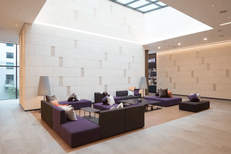 프런트 데스크와 메인 로비는 1층에 자리했다. 같은 층에 비즈니스 센터와 일리 카페, 편의점 ‘이마트24’가 있다. 이외 부대 시설로는 루프탑 트랙과 수영장, 체련장, 사우나, 코인 세탁실 등을 갖췄다.