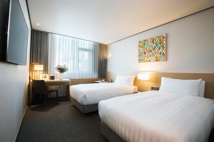 크게 객실은 디럭스와 테라스 스위트, 슈페리어 스위트로 나뉜다. 침대는 더블과 트윈, 할리우드 등으로 구성됐다. 올스테이로 10만 원대 이하부터 예약할 수 있다. 위치와 시설을 고려했을 때, 최고의 가성비를 갖췄다고 할 수 있다!