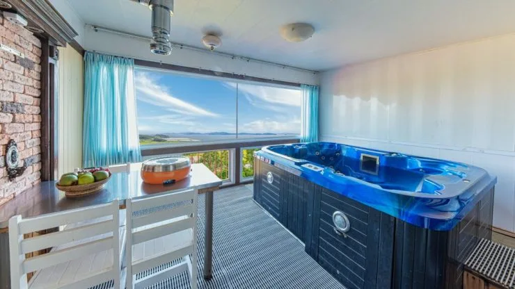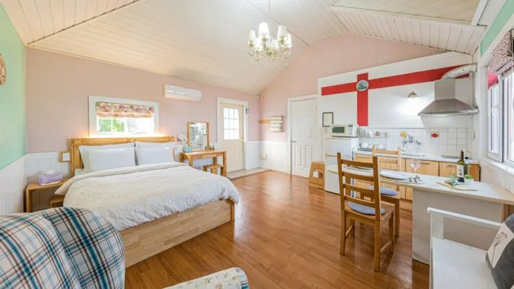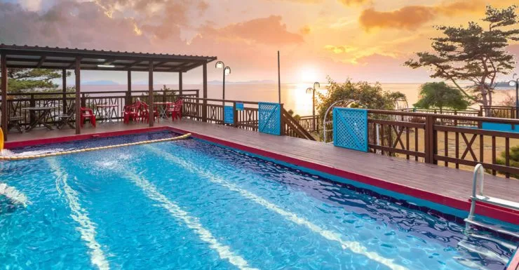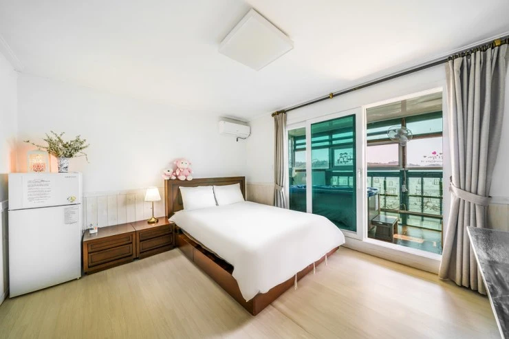 전 객실 오션뷰로 설계됐으며, 복층형 객실에서는 바다를 바라보며 스파도 즐길 수 있다. 스파 욕조는 아이들 물놀이용으로도 넉넉한 크기를 자랑한다. 저녁 시간에는 낭만적인 낙조도 조망 가능하다. 아울러, 숙소 공용 시설로는 워터 슬라이드 수영장과 바비큐장, 잔디 정원 등을 갖췄다.