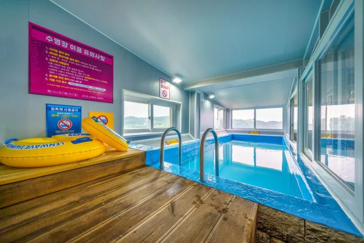 펜션은 총 5개 객실을 보유했다. 객실에 따라 제트 스파 또는 온수 수영장을 갖췄으며, 수영장은 하절기에는 32~33도, 동절기에는 35도 온도로 유지된다. 스파와 마찬가지로 별도 요금 부과 없이, 무료로 이용 가능하다. 에어펌프를 구비해 놨으니, 아이들이 좋아하는 튜브도 꼭 챙겨 오길 추천한다.