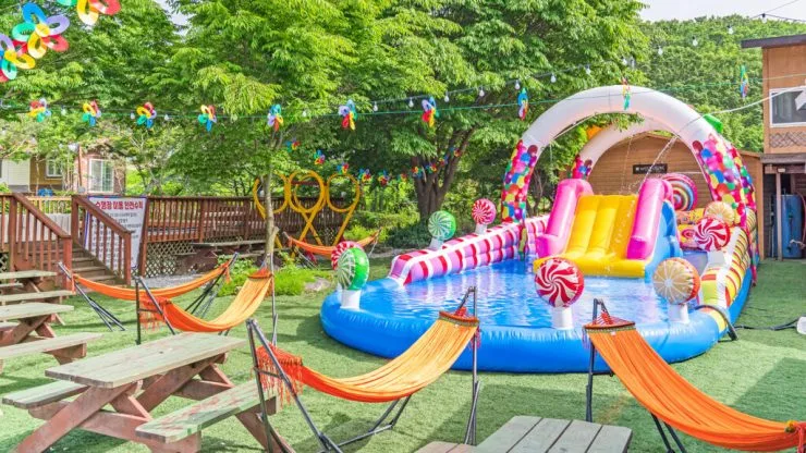 공용 부대 시설로는 워터파크와 잔디 축구장, 트램펄린을 갖췄다. 바비큐는 객실 타입에 따라 테라스 또는 실내 전기 그릴로 즐길 수 있다. 또한, 전 객실에 정글짐을 비롯한 키즈 놀이 시설과 월풀 스파를 설치해 놨다. 장난감도 많아서, 아이들이 지루할 틈이 없다. 부모님은 따끈한 스파로 피로를 풀어 보도록 하자.