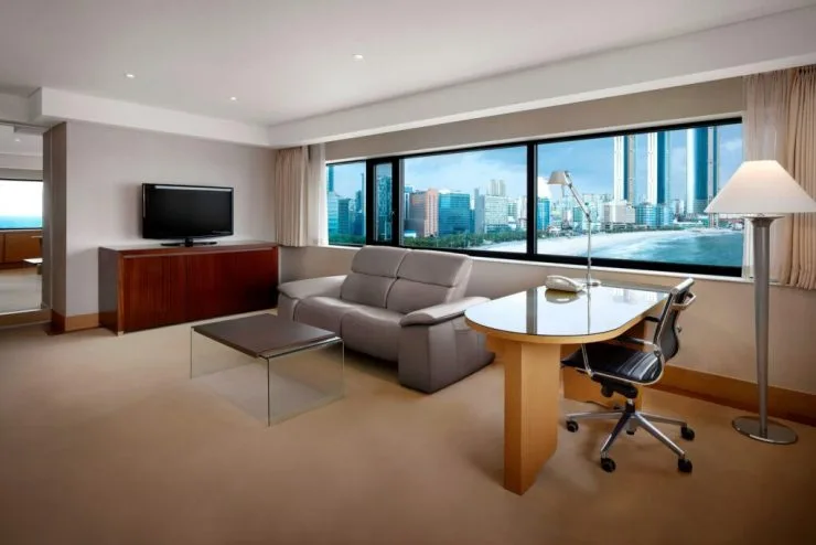 부산 웨스틴조선호텔의 객실은 디럭스, 이그제큐티브, 스위트로 이루어졌다. 해운대 바다와 동백공원, 시티뷰 중 선택할 수 있다.