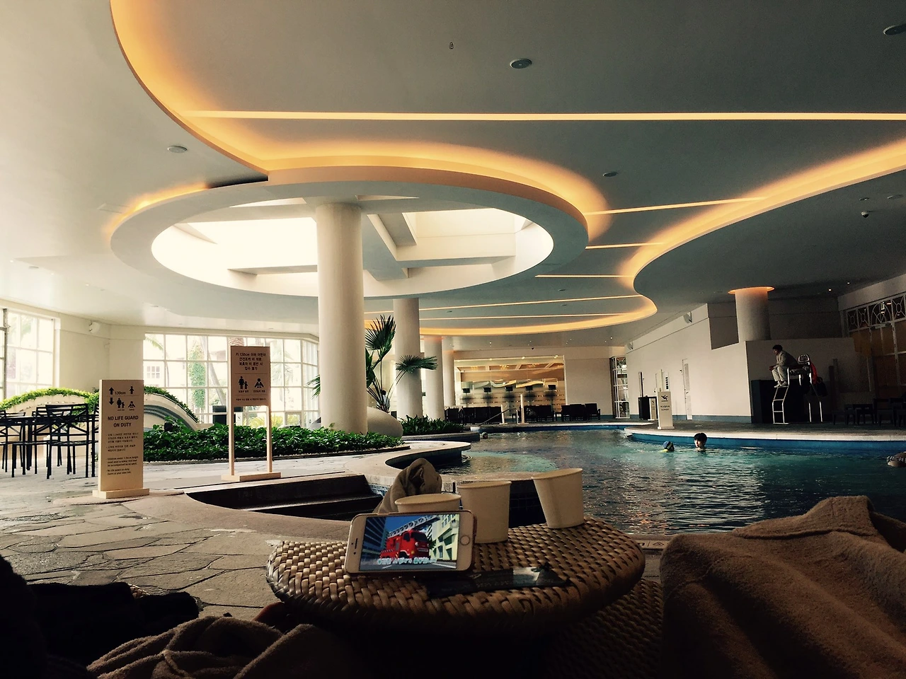 룸을 모두 둘러보고 한 숨 잔 뒤 우리는 수영장으로 이동했습니다. 너무너무 아쉬웠던 것은 저희가 간 12월에 완전 비성수기에.. 태풍 같은 비가 몰아쳤다는 사실입니다. 그래서 저희는 너무 슬프게도 실내수영장만 즐기다 돌아왔습니다. 그런데 말입니다, 여러분 신라호텔 수영장에는 엄청난 보물이 숨겨져 있습니다. 무엇일까요?