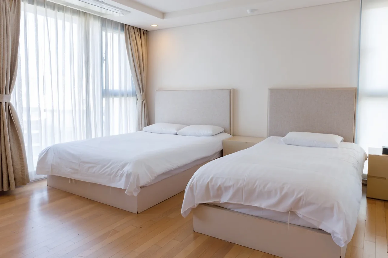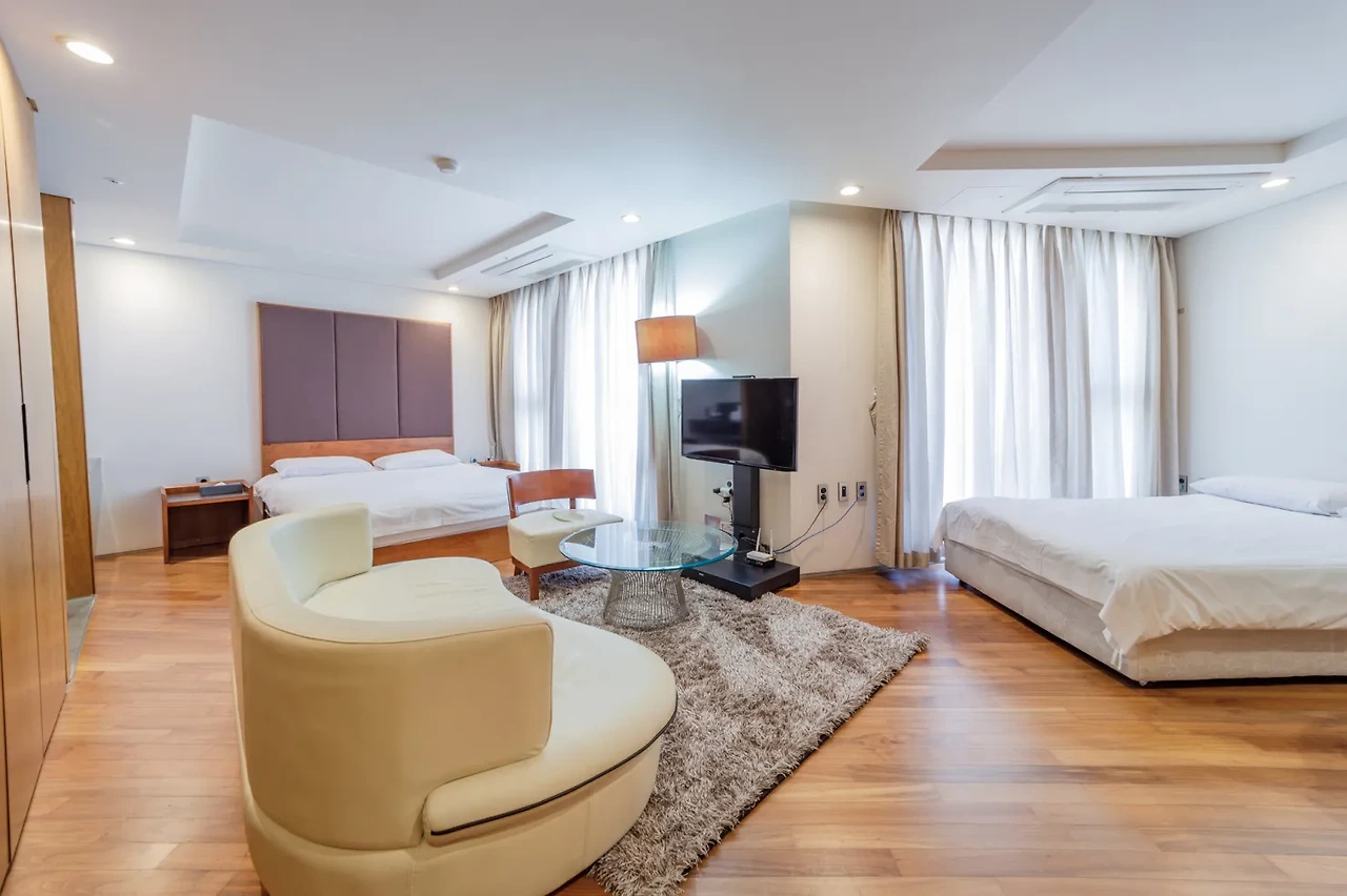제주 디아일랜드블루호텔의 프리미어 패밀리 스위트룸은 4인 가족이 머무르기 좋은 객실이다. 더블베드 1개와 싱글베드 2개의 구성으로 편안한 잠자리를 보장할 거다. 넓은 거실에는 소파와 다이닝 테이블도 갖춰져 있어 지내는데 불편함이 없다.
