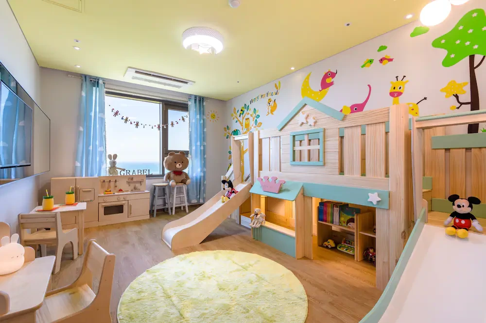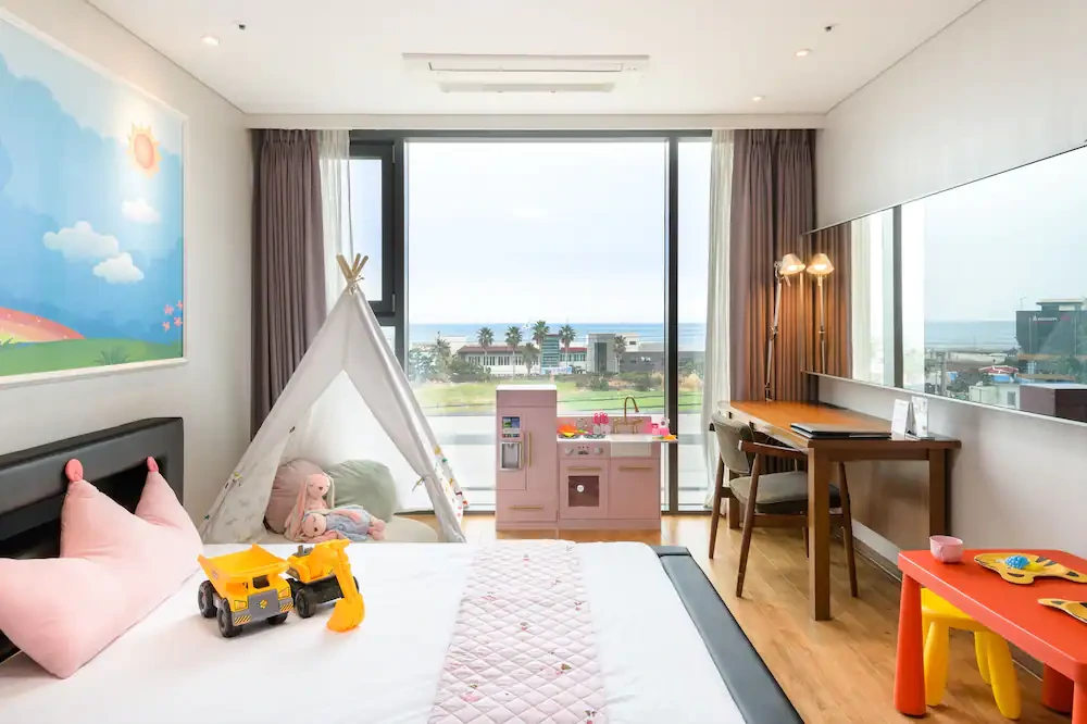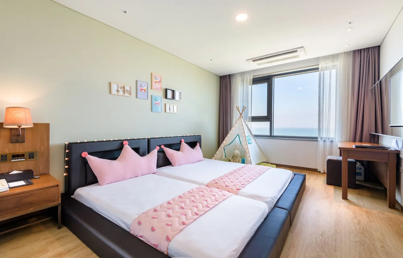 가족 여행자에게 사랑받는 오션뷰 객실로 침실과 거실, 욕실을 갖췄다. 더블과 싱글로 구성된 저상 침대와 키즈 텐트, 각종 장난감을 구비해 놨다. 기준 인원 3인에 최대 5명까지 투숙 가능하다.