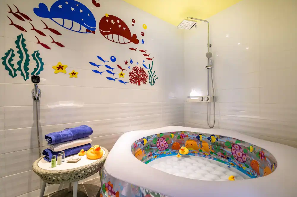 키즈 스위트는 욕실마저 특별하다. 아이들이 물놀이를 즐길 수 있는 미니 풀장과 비데가 설치돼 있다. 어메니티로는 샴푸와 린스, 바디워시, 비누가 제공된다. 칫솔과 치약 등 개인 위생용품은 따로 챙겨 와야 한다.