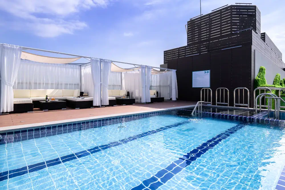 루프탑 수영장은 9월부터 6월까지는 온수풀로 운영된다. 수영복 착용은 필수이며, 객실 수건을 가지고 오면 안 된다. 비치 타월은 1장당 3천 원에 대여 가능하다. 동절기에는 이글루 돔과 함께, 특별한 추억을 만들 수 있다.
