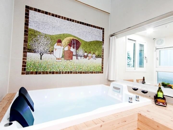수영장과 스파를 즐길 수 있는 곳으로 하루 종일 펜션에서 시간을 보내기에도 좋다. 넓은 객실이 특징으로 4~6인 가족이 이용하기에도 좋다. 현재 엘모로 풀빌라에서는 투숙객에게 와인 1병을 제공하고 있다.