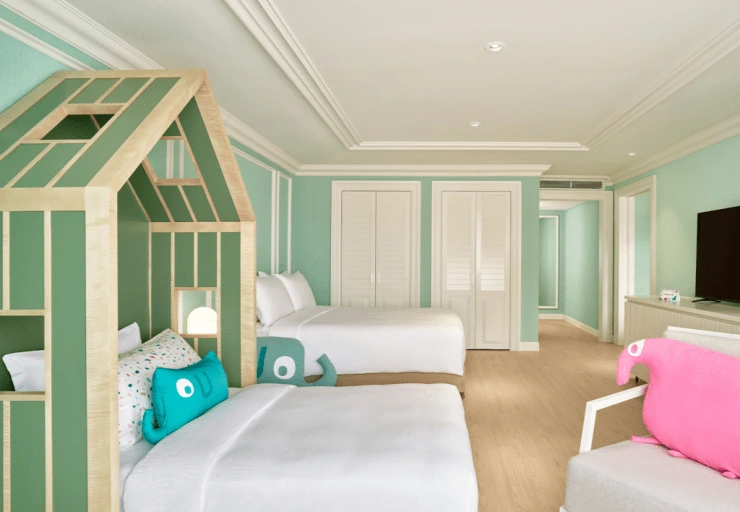 메인과 힐 스위트 빌딩으로 나뉜 객실은 총 11가지 타입으로 구성됐다. 이중 키즈 디럭스는 숲과 바다, 하늘을 콘셉트로 꾸며놨으며, 훨씬 넓은 공간의 키즈 프리미어 스위트 룸도 있다. 한편, 호텔에서는 올데이 키즈 케어 서비스를 비롯해 쿠킹 클래스, 클레이 타임 등 키즈 체험 프로그램을 운영 중이다.