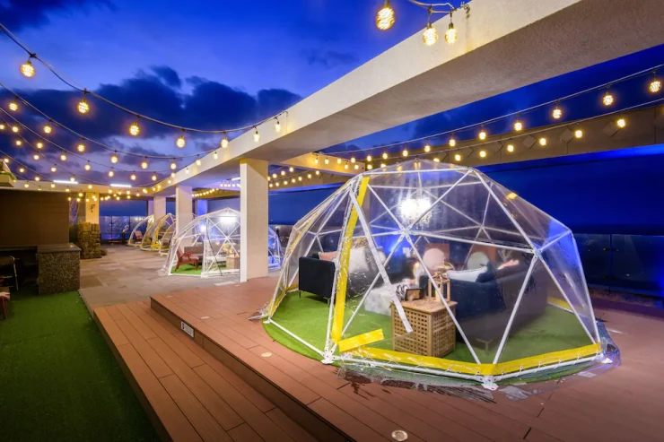 서귀포의 작은 이탈리아, 토스카나로 떠나 봅시다. 주황색 테라코타 지붕과 밝은색 벽돌 외관이 한층 이국적인 분위기를 만들어 주며, 호텔 중앙에는 투숙객만 이용 가능한 야외 온수풀과 풀 사이드 카페가 자리했다. 글램핑 시설에서는 프라이빗 바비큐 만찬과 낭만적인 불멍도 즐길 수 있다.