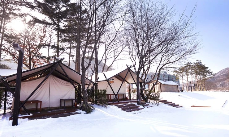 눈썰매, 얼음썰매, 송어낚시, 이글루 꾸미기 등 다채로운 활동을 즐길 수 있다. 로맨틱한 글램핑장에서 프라이빗 BBQ도 가능하니 가족여행지로 이만한 곳도 없을 거다.