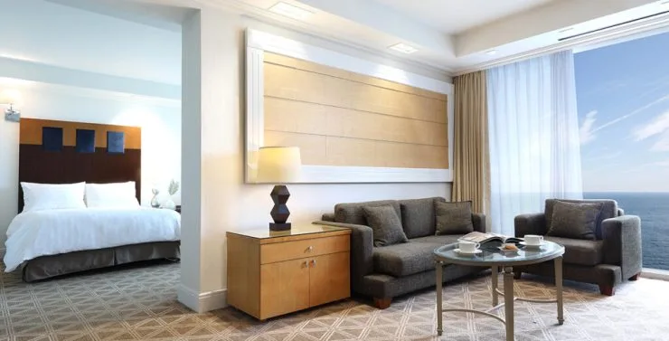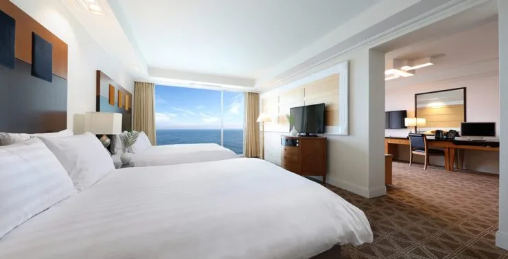 라마다프라자 제주는 매우 다양한 객실 타입을 보유하고 있습니다. 스탠다드, 스위트, 온돌 크게 3가지 타입을 제공한다. 키즈, 패밀리, 온돌 등 가족 여행객이 사용하기 좋은 객실이 많다. 호화 유람선을 모티브로 한 인테리어도 인상적이다. 객실에서는 바다, 혹은 한라산 전망도 감상할 수 있다.