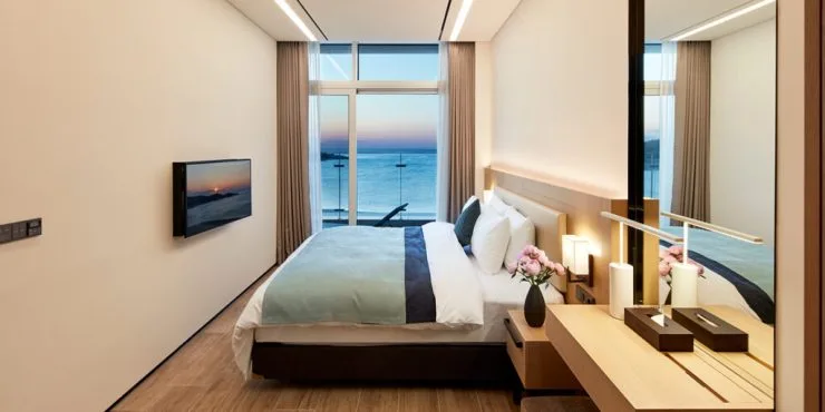 전 객실 오션뷰를 자랑하는 풀빌라 펜션이다. 굳이 다른 여행지 찾지 않아도 좋을 만큼 전망이 끝내준다. 특히 침대에 누워 맞는 일출이 환상적이다. 전망을 극대화 하기 위해 객실에는 대형 유리창을 설치해 놨다. 펜션은 총 14개 객실을 보유했으며, 풀빌라와 스파 타입으로 나뉜다.