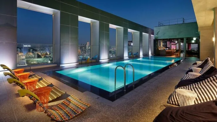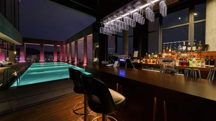 22층에 위치한 루프탑 바 ‘플로팅’이 위치했다. 다양한 종류의 와인, 칵테일, 가벼운 스낵을 즐길 수 있다.