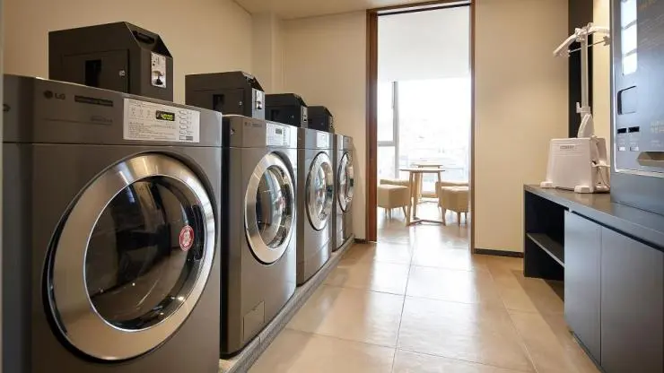 5층에는 코인 런드리 서비스를 유료로 이용할 수 있다. 24시간 언제든 세탁과 건조를 동시에 이용할 수 있다.