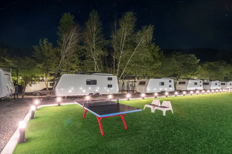 두번째로 소개할 가평 글램핑 불멍 숙소는 ‘힐링피아 카라반 글램핑 풀캠핑장‘이다. 폴딩도어로 되어 있는 카라반 객실 타입으로만 구성된 글램핑 숙소다. 전 객실마다 비치되어 있는 개별 테라스 시설에서 프라이빗하게 바베큐와 불멍을 즐길 수 있다.