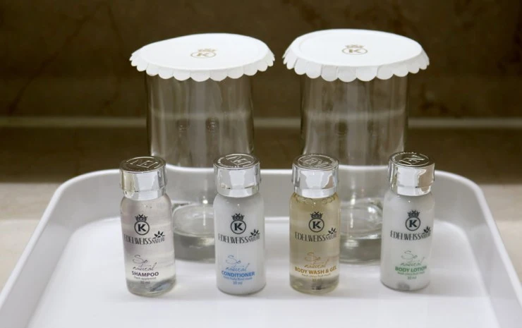 욕실은 기존 숙소들에 비해 굉장히 널찍한 사이즈를 자랑해요! 욕조와 세면대, 샤워부스, 변기가 모두 설치되어 있음에도 전혀 답답하지 않다. 어메니티는 자체 브랜드 제품으로 샴푸, 컨디셔너, 샤워젤 등이 준비되며, 치약, 칫솔 등도 갖췄다.