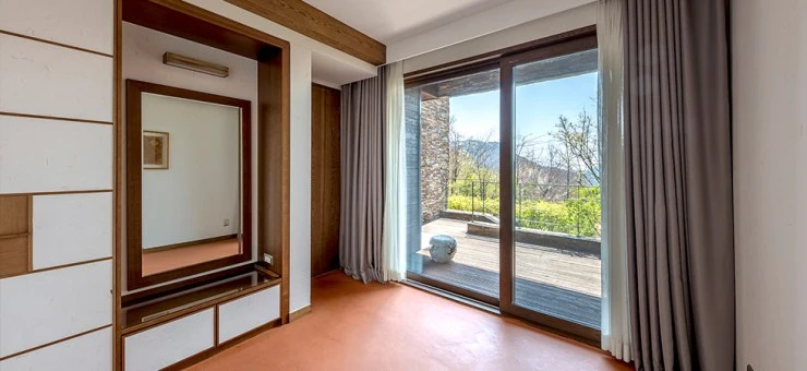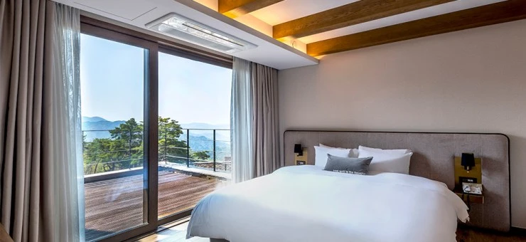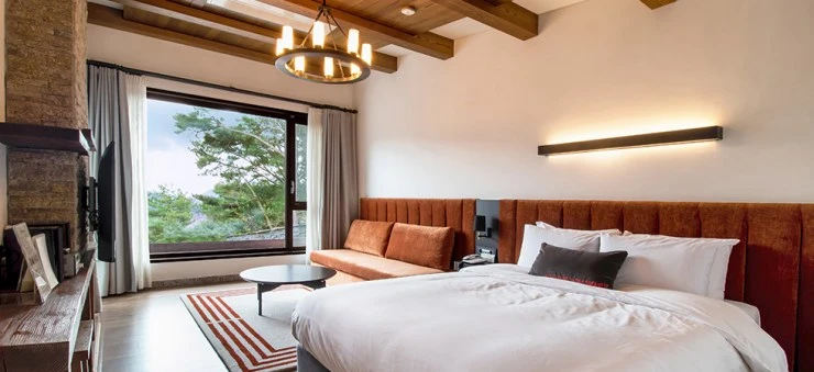 제천 리솜포레스트는 프라이빗한 빌라형 객실로 S25 가장 기본 객실로 최대 5명까지 투숙이 가능하다. 거실 겸 침실과 온돌룸으로 구성돼 있다. 커다란 통창이 있어 아름다운 마운틴 뷰도 감상할 수 있다. 개별 테라스도 있어 개방감을 느낄 수 있다.