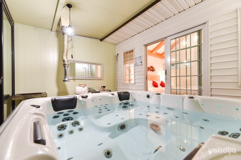 술취한바다 객실은 더블 침대 1개가 놓인 2인 기준 객실이다. 넓은 스파를 즐길 수 있으며 테라스에서 개별 바비큐가 가능하다. 취사가 가능한 객실이다.