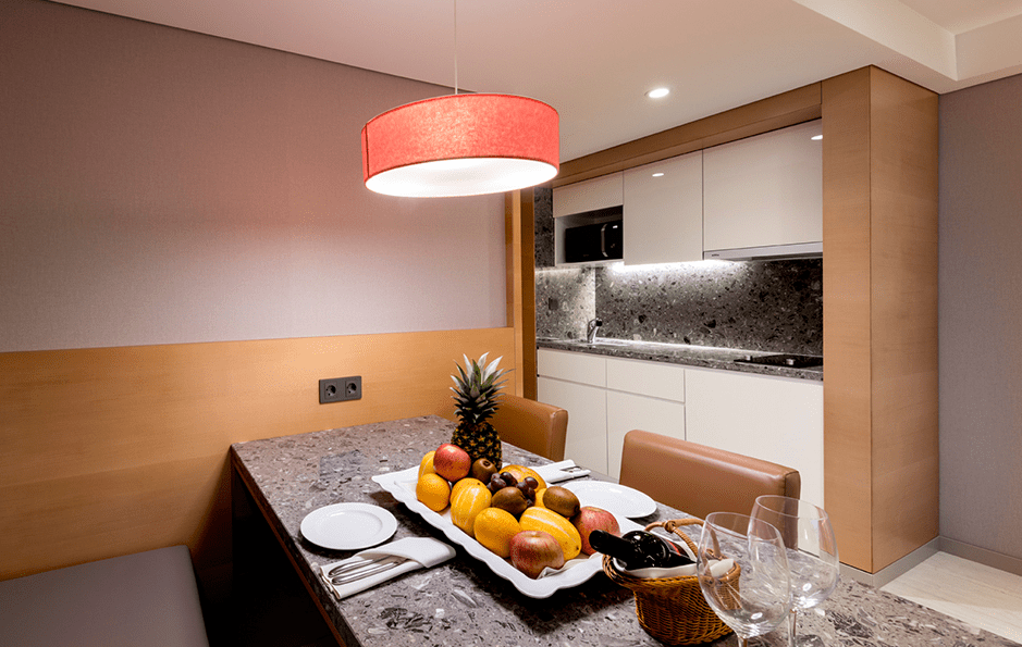 디럭스 트윈을 포함해 일부 객실에서는 간단한 취사가 가능하다. 싱크대와 냉장고, 전자레인지, 인덕션레인지 등을 갖췄다. 배달 음식을 잔뜩 늘어놔도, 여유로운 식탁도 구비했다. 단, 육류와 튀김, 생선류는 조리 금지다.