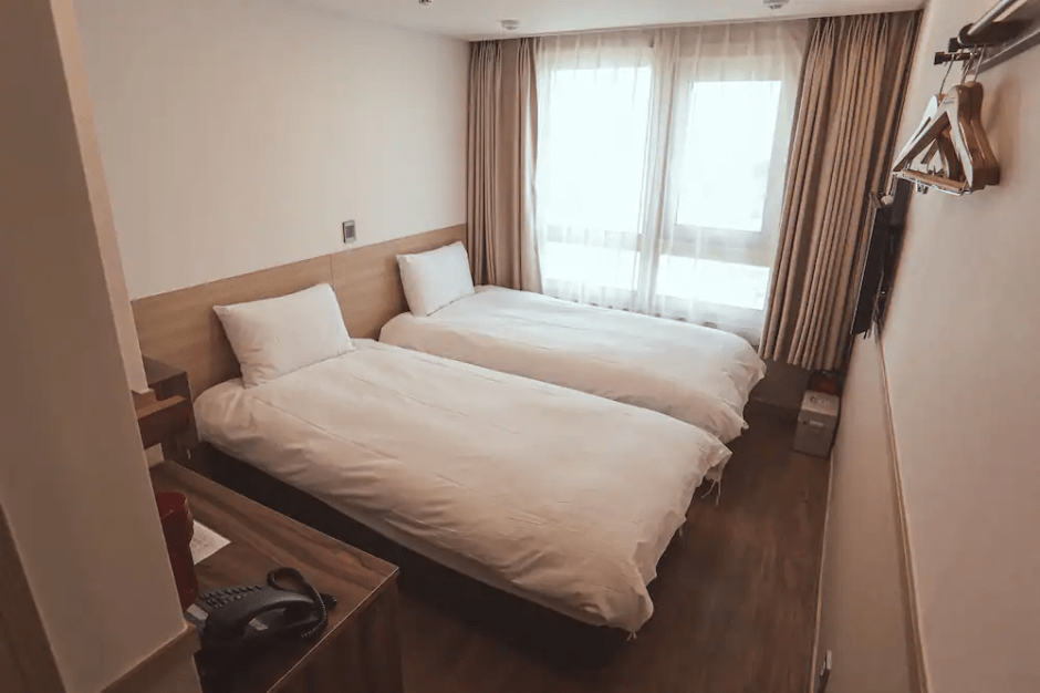 나 홀로 여행자에게 전폭적인 지지를 받는 인기 객실이다. 싱글 베드와 32인치 TV, 에어컨, 냉장고, 전기 포트 등을 갖췄다. 옷장에는 슬리퍼와 미니 빨래 건조대가 있어요. 별도 요청 시, 가습기도 이용 가능하다.