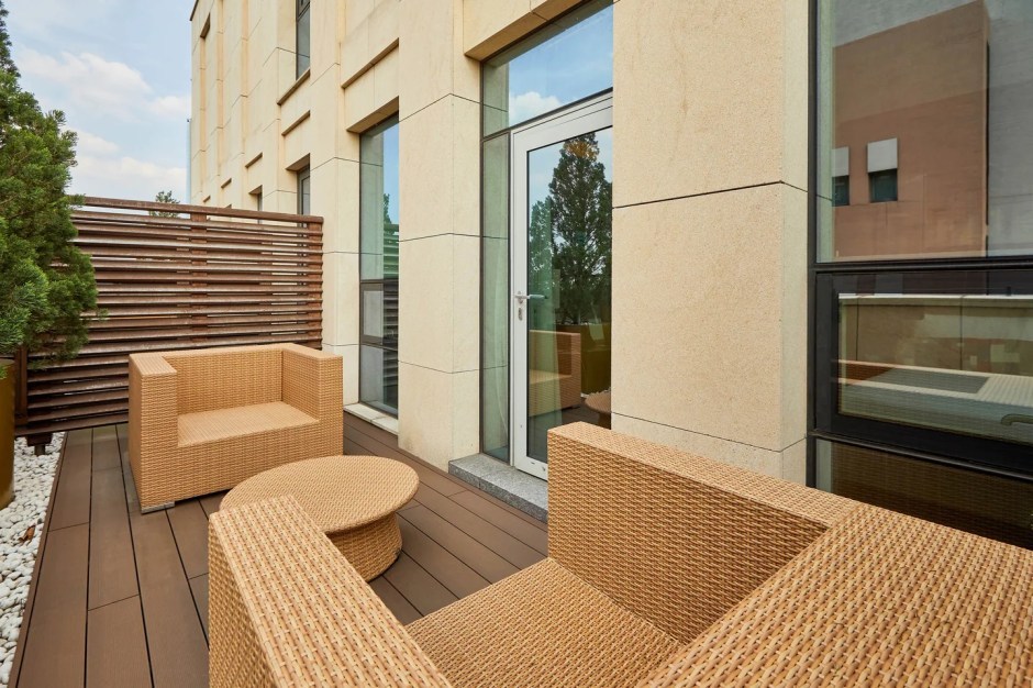 스위트 객실은 넓은 개별 테라스를 보유하고 있습니다. 객실 내에는 커피 머신도 비치돼 있으니 여유로운 홈 카페 감성은 느껴보세요.