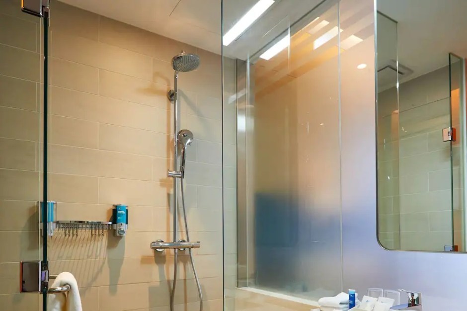어메니티는 샴푸와 바디워시가 다회용 디스펜서에 제공된다. 칫솔과 치약 등 일회용품도 함께 구비되어 있다.
