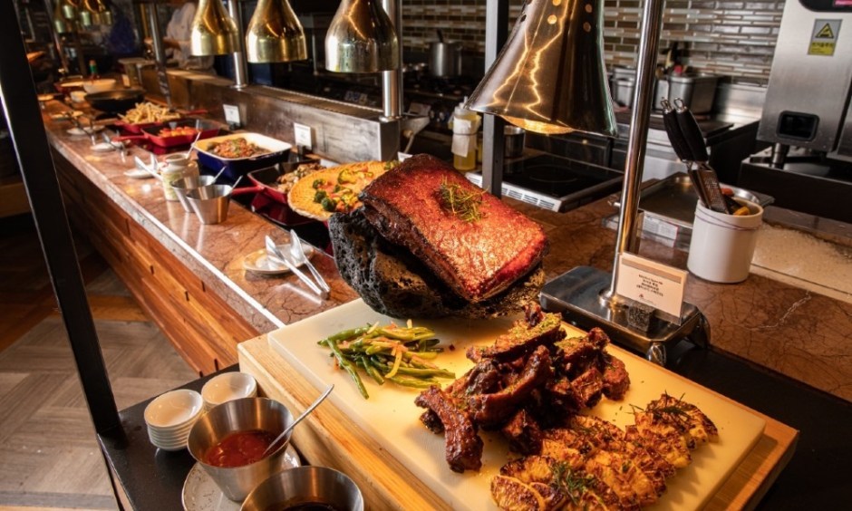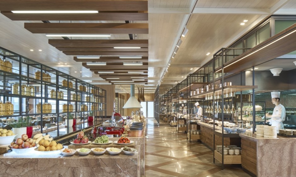제주 신화월드 메리어트관의 조식은 메리어트관 5층에 위치한 ‘스카이 온 파이브 다이닝’에서 제공된다. 한식은 물론 일식, 중식, 양식과 함께 제주 특산물을 사용한 특별한 메뉴를 맛볼 수 있다. 운영 시간은 7시부터 11시다.