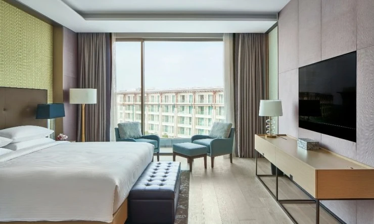 제주신화월드 메리어트관은 총 572개의 객실을 보유하고 있다. 이스트 2동과 웨스트 2동으로 구성되어 있다.