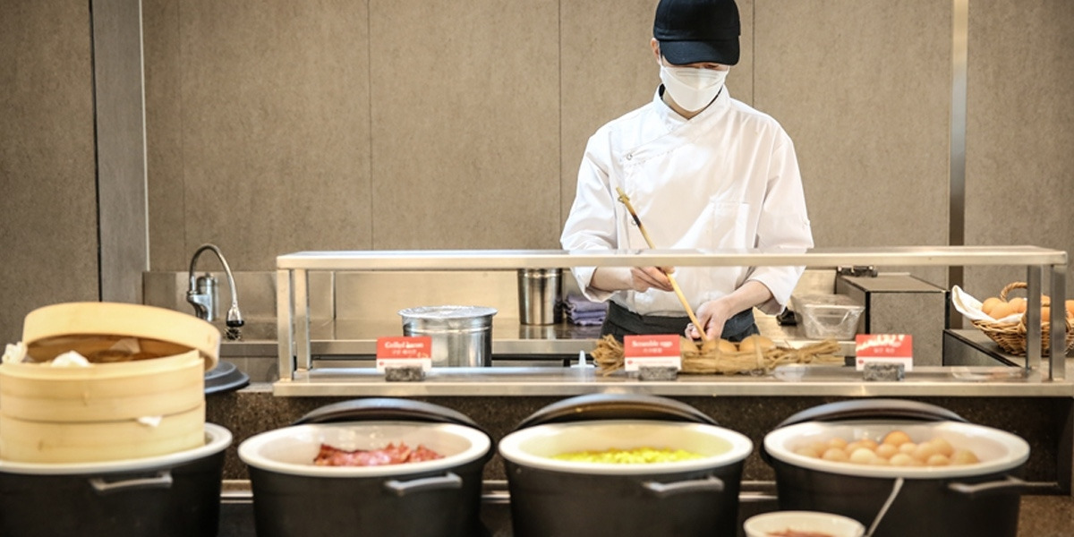 아침식사는 1층 로비에 위치한 레스토랑 하늘정원에서 제공된다. 평일은 오전 7:30 ~ 10:30 사이에 세미 뷔페식으로, 토요일과 일요일에는 풀코스 뷔페로 즐길 수 있다. 주말에는 2부 제로 운영되고 있으며, 마지막 입장은 오후 12시까지다.