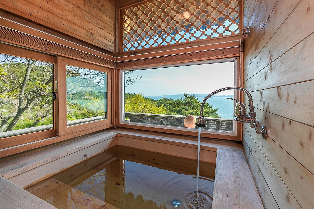 객실은 총 5개로 모두 바다를 조망할 수 있도록 설계되어 있는데, 그중에서도 남해 바다를 정면으로 바라보며 따뜻한 반신욕을 즐길 수 있는 편백 욕조가 설치된 본채 객실이 단연 인기가 높다. 최소 한 달 전에는 예약을 해야 할 정도로 인기 숙소라고 하니 서둘러 올스테이로 최저가 확인해 보길 추천한다!