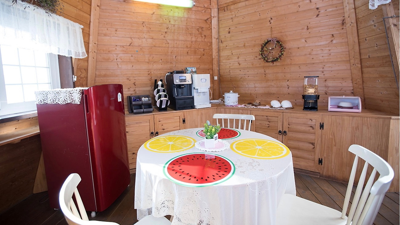부대시설로는 풍차 모습을 한 공용 카페가 있다! 커피 머신이 있어 투숙객이라면 무료로 커피를 즐길 수 있는데, 커피뿐만이 아니라 각종 차, 커피믹스, 간단한 스낵 등이 있으니 오션뷰 감상하며 기분 좋은 티타임 즐겨보자!
