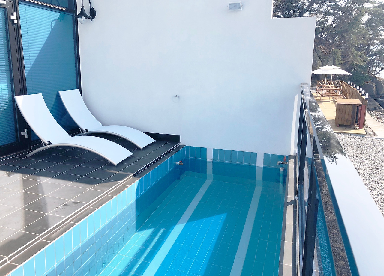 마지막으로 소개할 남해 펜션 추천 장소는 2021년 여름에 새롭게 오픈한 비마이아일랜드로 하루에 딱 2팀만 이용 가능한 곳으로 프라이빗 한 독채 펜션이라는 점이 가장 큰 메리트가 아닐까 싶다. 그 밖에도 2층에는 사계절 내내 이용 가능한 개별 온수 풀이 준비되어 있고,