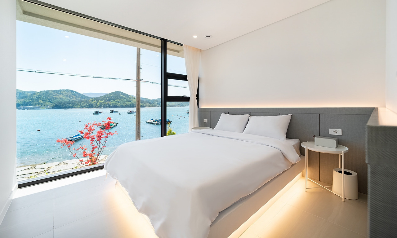 두 번째로 소개할 곳은 남해 베이스테이 풀빌라 펜션으로 바다 앞에 위치해 모든 객실에서 최고의 일몰과 오션뷰를 감상할 수 있는 곳이다. 객실은 총 5개로 모두 2인실로 커플 여행에 딱 알맞은 곳이다. 성인 여성의 경우 3인까지도 투숙 가능하다. 참고로 노키즈존으로 운영되고 있다. 객실은 화이트 톤으로 세련된 위기로 꾸며져 있어 어디서 사진을 찍어도 화사한 인생 사진을 남길 수 있다.