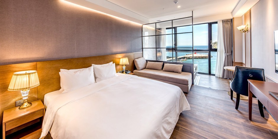 1,6000개의 객실에서는 시원한 제주 시내 전망을 감상할 수 있다. 전면 유리창으로 개방감과 채광, 전망까지 모두 잡았다! 한국의 예술 작품들이 어우러진 세련된 디자인도 매력적이다. 스위트룸에는 다이닝 공간도 더해져 더욱 편리하다. 여행의 피로를 싹 날려줄 욕조도 준비돼 있다.